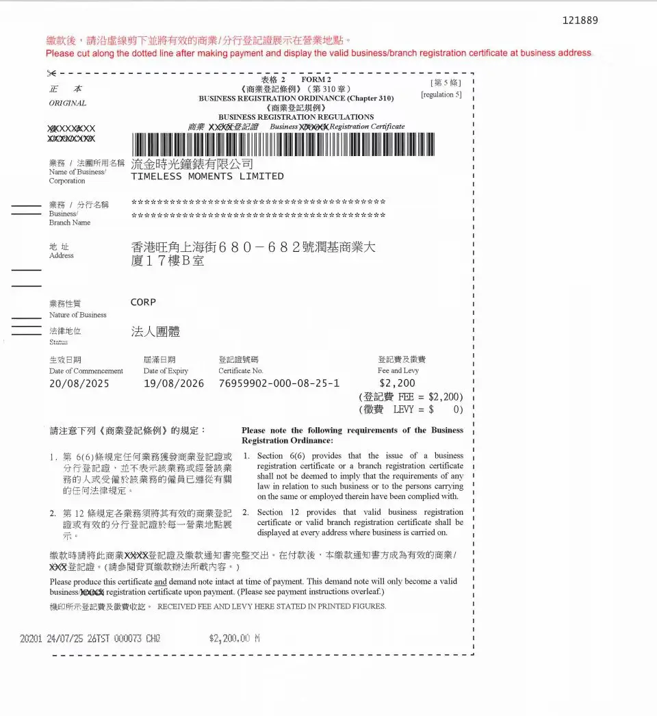 Registered address : ROOM B, 17/F., YUN KEI COMMERCIAL BUILDING, 680-682 SHANGHAI STREET, MONG KOK Hong Kong S.A.R.